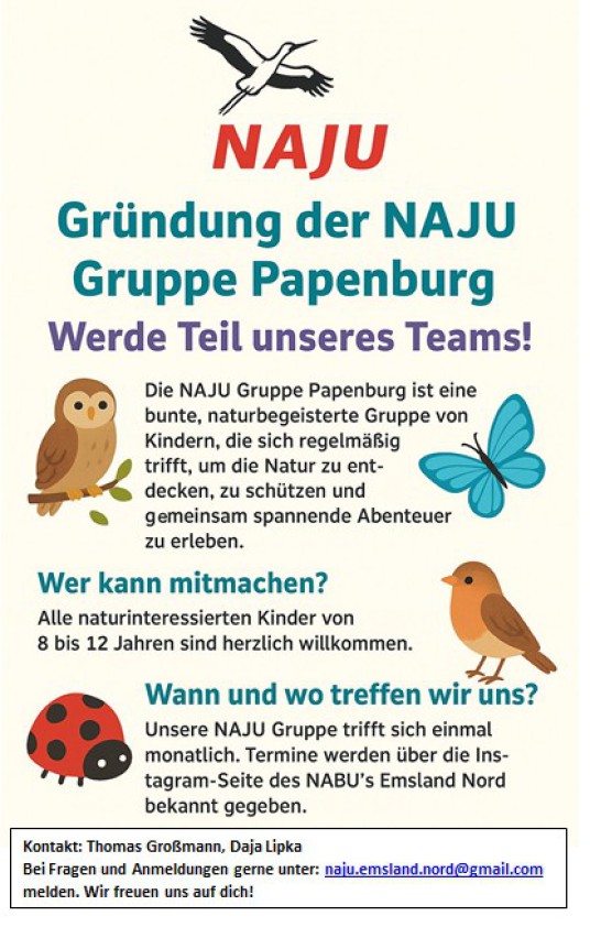 Seit letztem Samstag, dem 25. Oktober 2025, gibt es in Papenburg eine neue NAJU-Gruppe. Am Samstagvormittag startete sie
