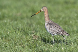 Außerdem erhöht sich auf trockeneren Flächen auch die Dichte an Mäusen, wodurch wieder mehr Greifsäuger wie Fuchs oder Wiesel auftauchen. Greifsäuger fressen auch Wiesenvögel und plündern ihre Nester meist in der Dunkelheit. Neue Studien und Beobachtungen von NABU-Aktiven belegen, dass Gelege von Wiesenvögeln tatsächlich zum großen Teil nachts geplündert werden und die Nester rückstandslos leer sind. (Foto: Uferschnepfe - Erhard Nerger)